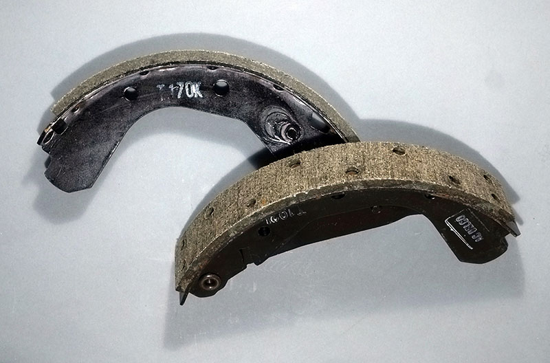 Pair of asbestos resin composite brake shoes for a road vehicle